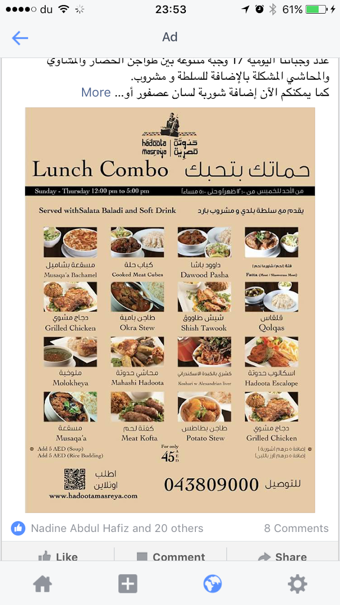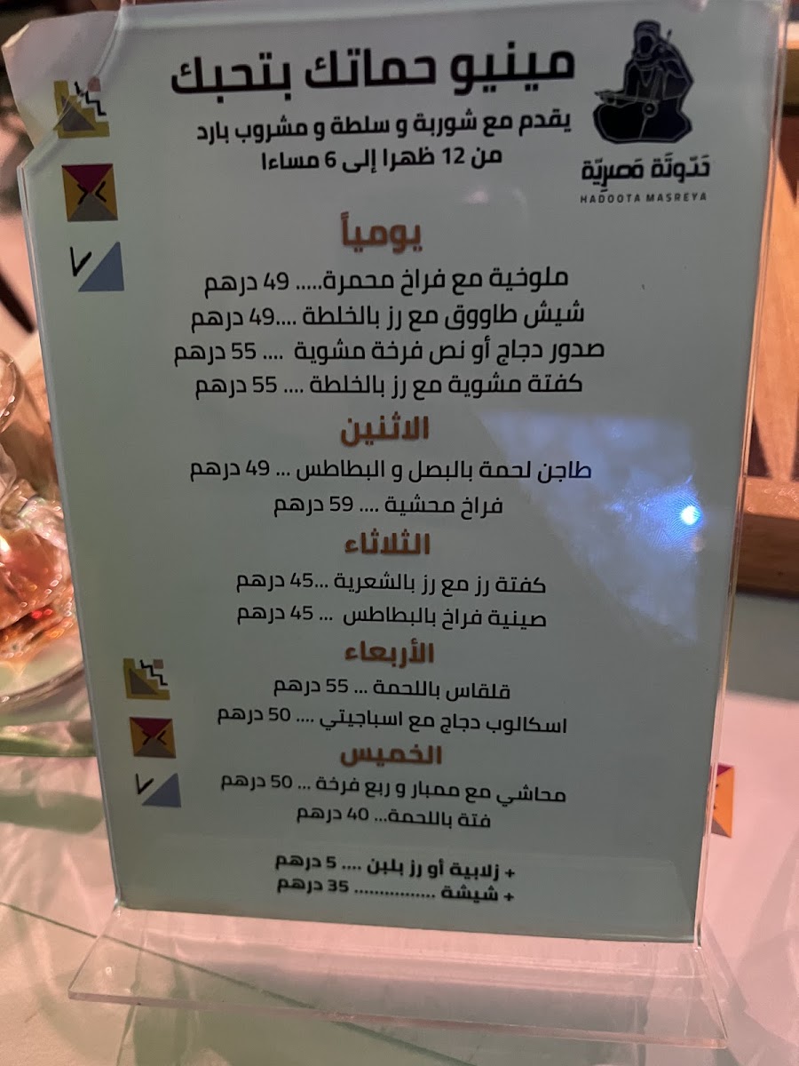 Hadoota Masreya Menu